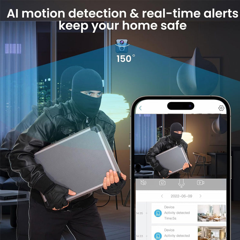 CRYSTAL-CLEAR 1080P HD VIDEO - Capture every detail with sharp, high-definition footage. The 150° wide-angle lens ensures comprehensive coverage, reducing blind spots. Commonly used for business and home security as well as baby monitor, toddler indoor camera, pet monitor camera, and used for motion detection recording to care for the elderly.