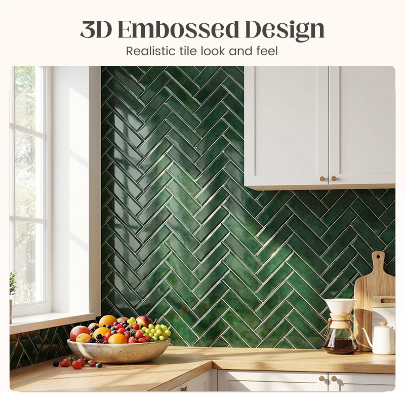 STUNNING 3D EMBOSSED TEXTURE - The 3D gel-like surface creates a realistic tile effect. This gives your walls a high-end, textured look without the cost and complexity of installing genuine ceramic tiles for an instant upgrade.