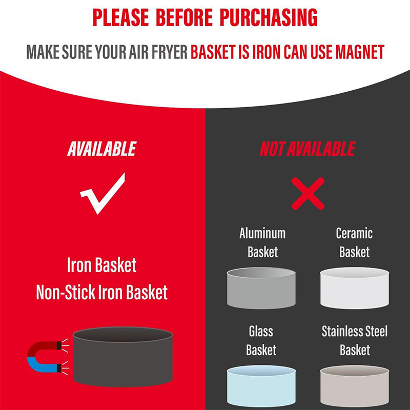 Ensure your air fryer basket is made of a compatible magnetic metal for the buckles to adhere properly.