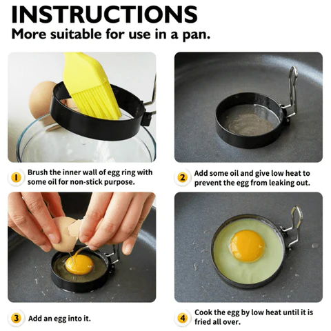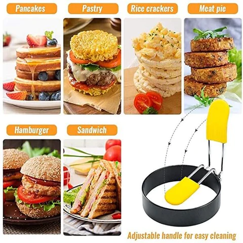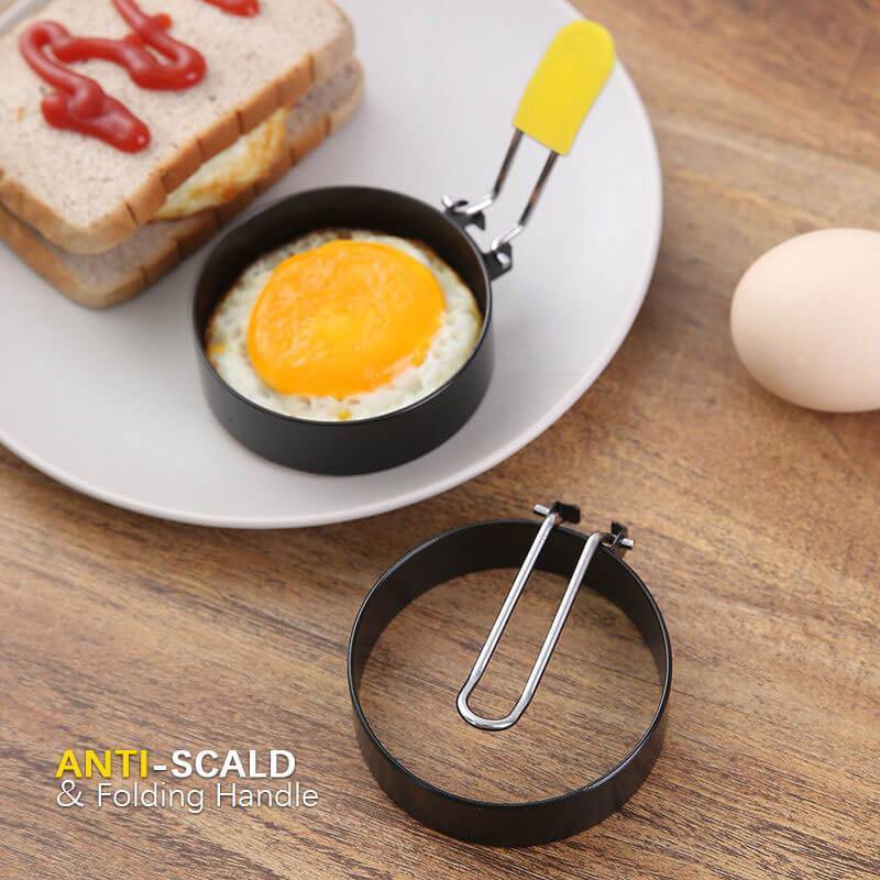 [Perfect-looking eggs without any leaks] The egg ring is quick and easy to use, and not only does it help prevent eggs from leaking, but it also keeps them round. Just lift the small handle, place it on your electric griddle or frying pan, and start cooking!