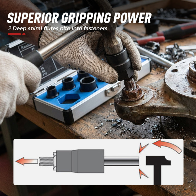 SUPERIOR GRIPPING DESIGN - The deep, reverse spiral flutes are engineered to bite down and securely grip rounded-off, rusted, or painted-over nuts and bolts, providing maximum torque for effortless and reliable extraction.