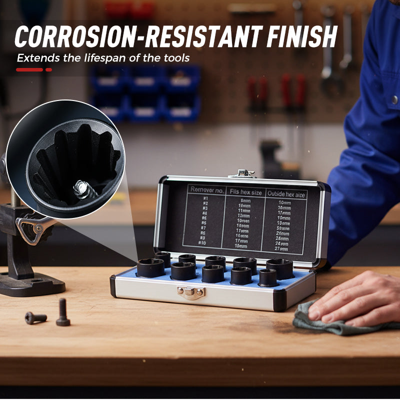 HIGH-STRENGTH STEEL CONSTRUCTION - Forged from premium chrome-vanadium alloy steel, this set offers exceptional durability and high impact resistance, ensuring it can handle the toughest removal tasks without breaking or wearing down over time.