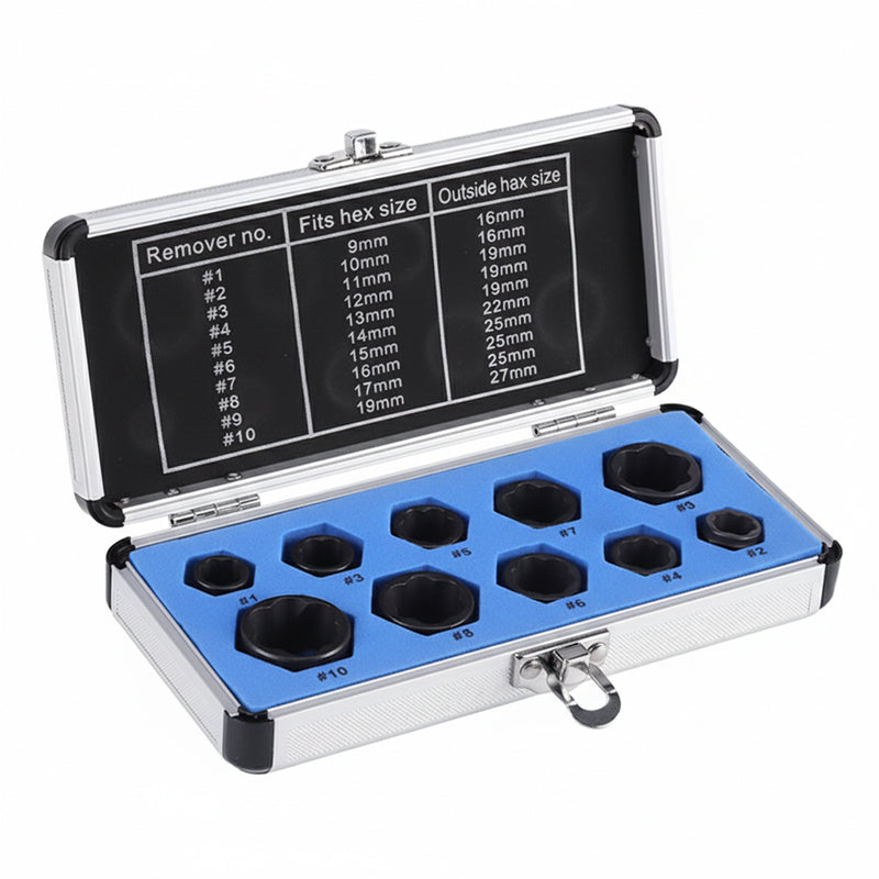 EASY IDENTIFICATION & STORAGE - The set comes in a sturdy, portable case with designated slots for each extractor. Laser-etched size markings on each socket allow for quick identification, improving your workflow and efficiency.