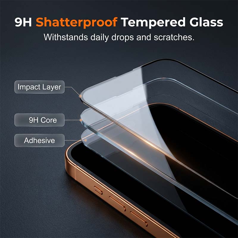 9H SHATTERPROOF TEMPERED GLASS - Crafted from premium high-alumina glass, this protector offers military-grade defense against keys, coins, and accidental drops.