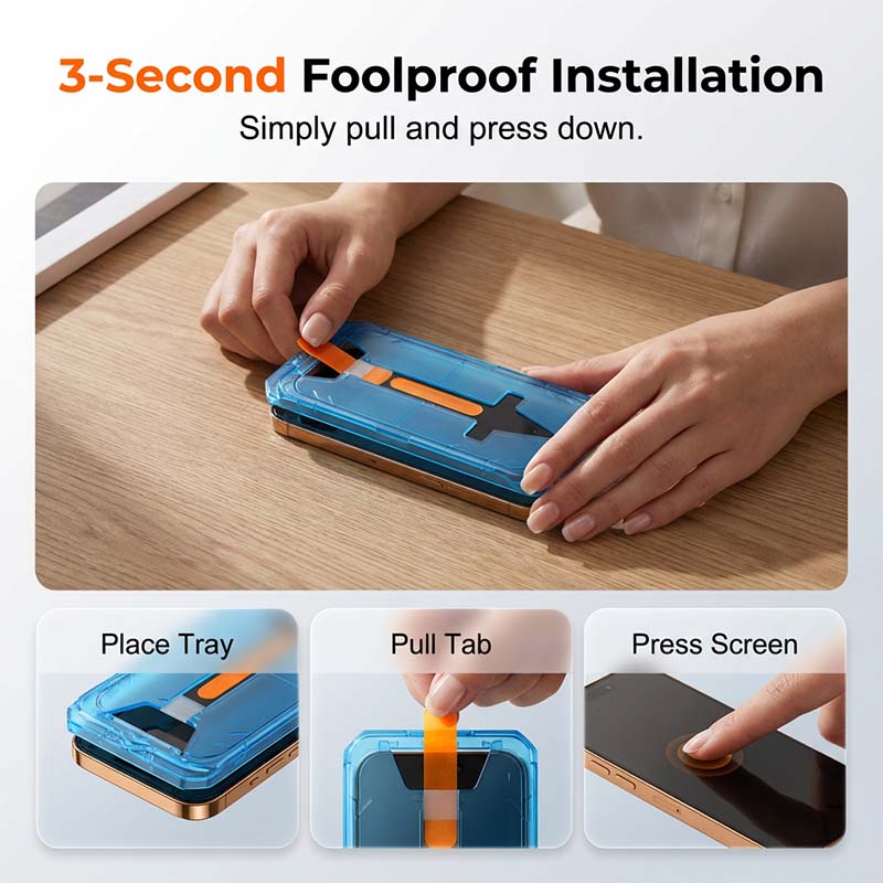 3-SECOND FOOLPROOF INSTALLATION - Say goodbye to crooked screen protectors. Our innovative tray design ensures perfect alignment every single time with a simple pull mechanism.