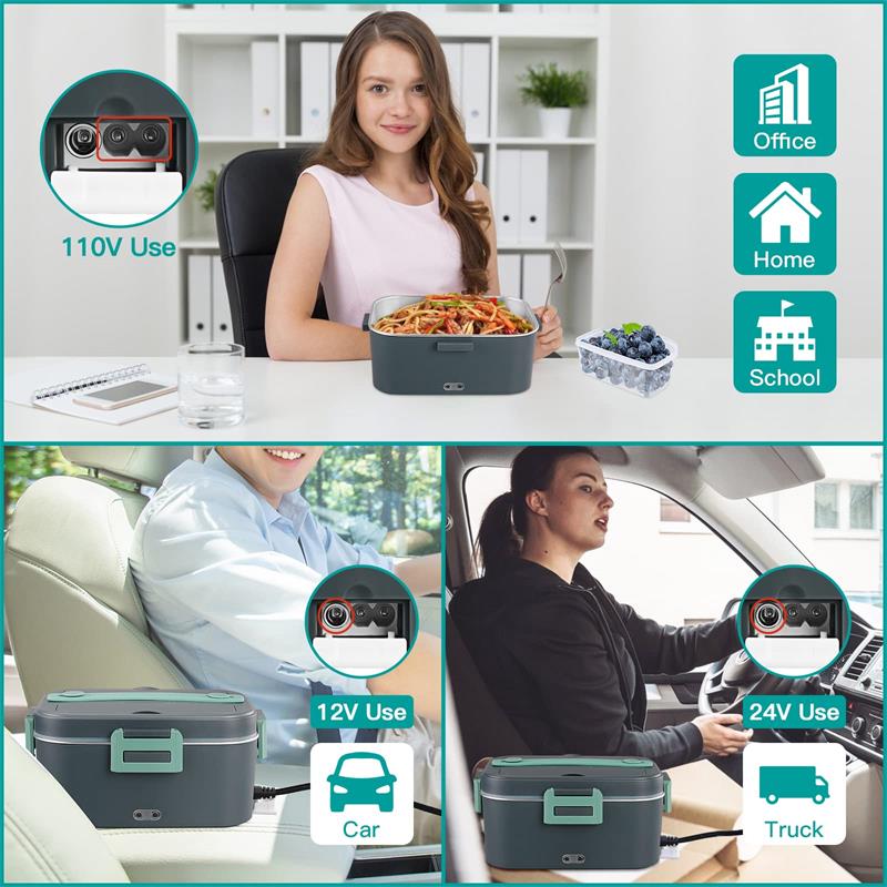 ćFast Warm and Healthy Mealsć-Ā Always tired of cold or fast food on the Go? Now just plug in and heat up your food with the power 75W fast heating electric lunch box with 110/220V/12V power cord at home/school/office or car/truck/site/hospital/picnic. We have improved and upgraded the heating system with increased energy, heated faster than 60W, and greatly improved the life of the heating system. Enjoy your warm and healthy home made food.