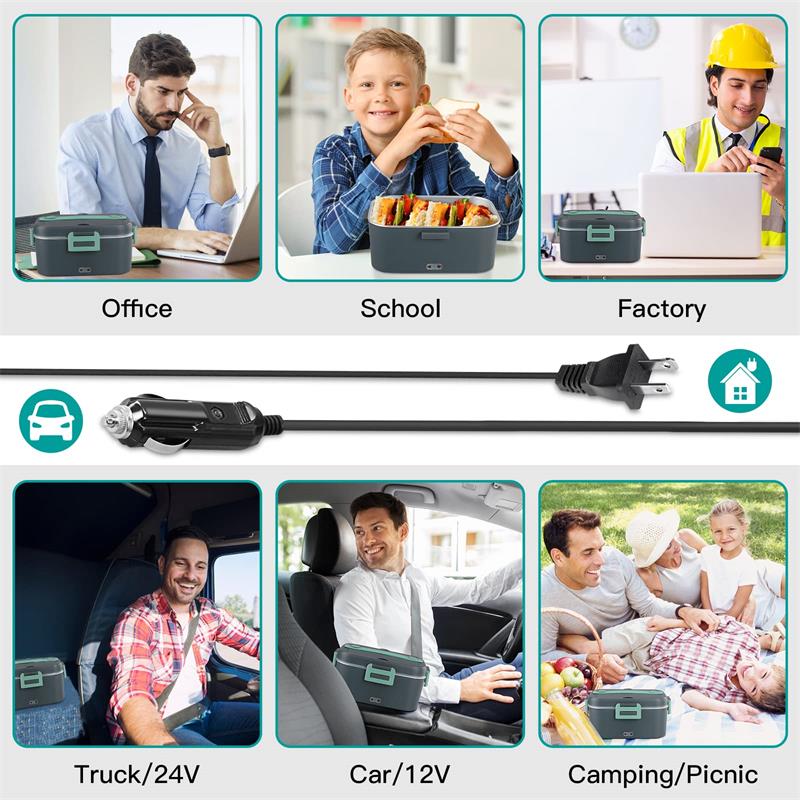ćSafe and Durable ć-Ā The shell of the portable heating lunch box is made of unbreakable and upgraded material, which is resistant to falling and not broken. The Inside food container is made of 304 stainless steel and the line is also certified, which are environmentally friendly and safe. Upgraded and improved heating system and high quality shell material make our lunchboxes last longer and more cost-effective!