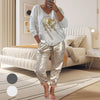 Women's 2 Piece Set: Devil's Eye Gold Foil Top and Sequin Pants Set