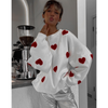 Fashionable Embroidered Heart Loose Round Neck Long Sleeve Knitted Sweater