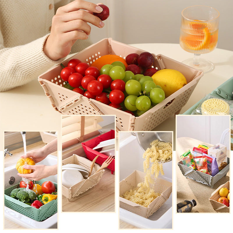 EASY DRAINING - This basket doubles as a colander. It's equipped with precision-placed drainage holes, allowing you to effortlessly wash, drain, and store your fruits, vegetables, or dishes.