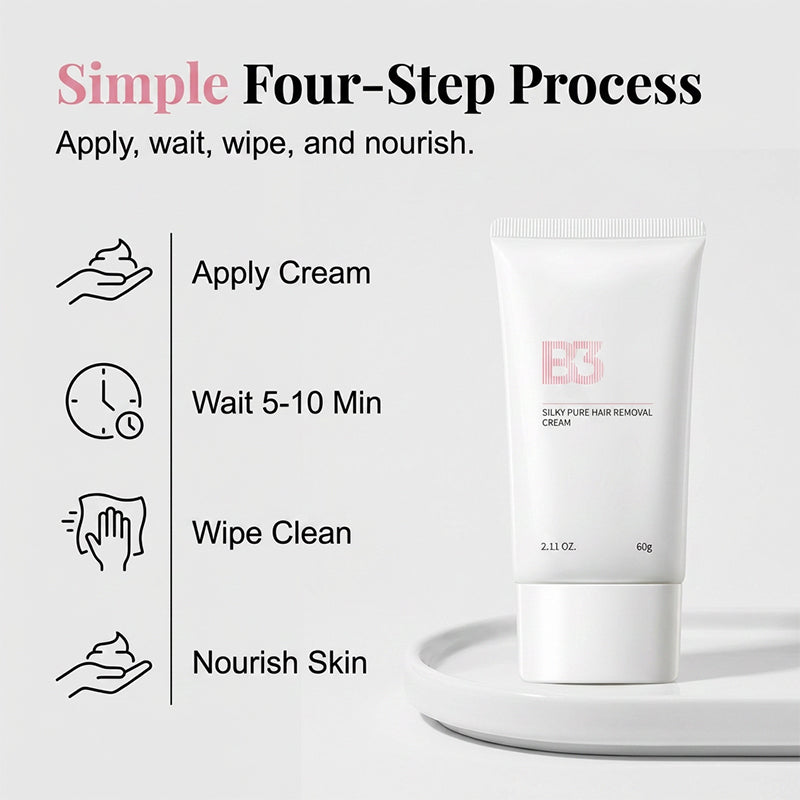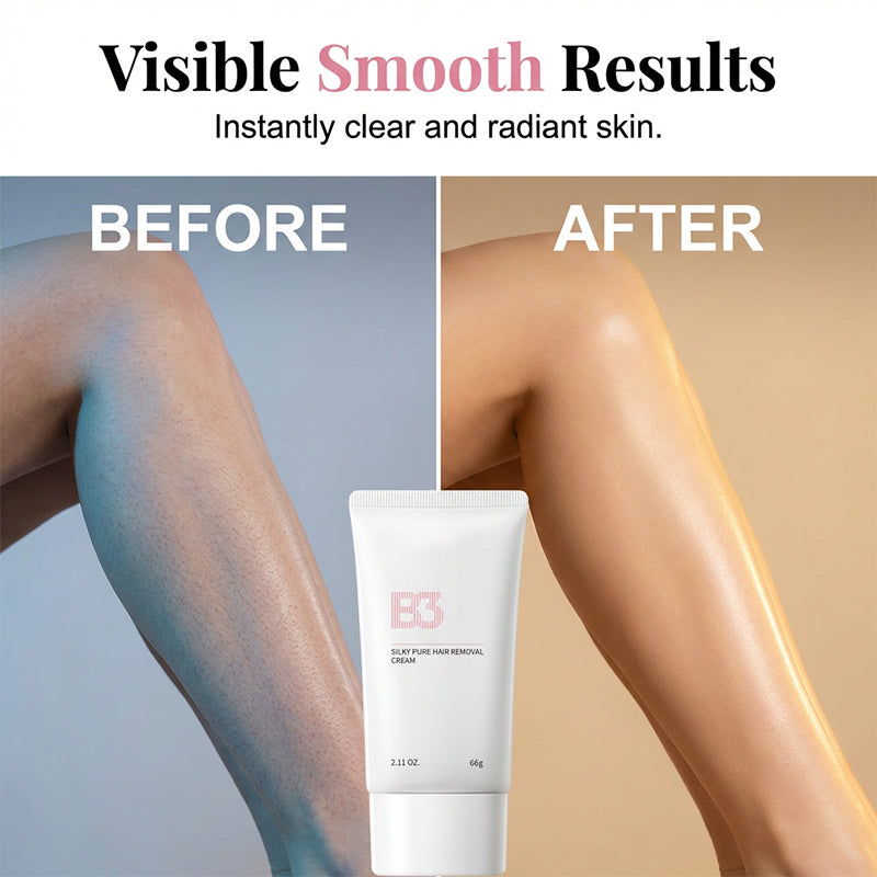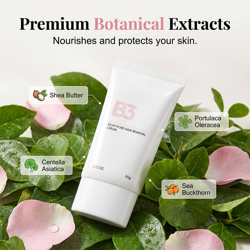 GENTLE SILKY HAIR REMOVAL CREAM - Experience painless and effective hair removal with our premium gentle formula, leaving your skin silky smooth, deeply nourished, and beautifully radiant without any irritation.