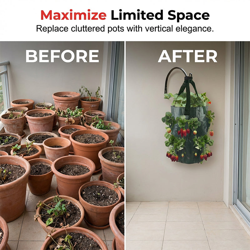 MAXIMIZE LIMITED SPACE - Stop tripping over bulky traditional pots. Our vertical hanging design frees up valuable floor space, making it the ultimate problem-solver for urban apartments and small patios.
