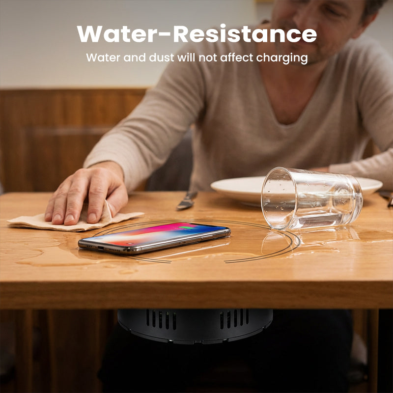 UNDER-DESK INSTALLATION - Free up valuable workspace by hiding the charger completely out of sight. Simply place your phone on the designated spot on your tabletop for effortless power, maintaining a minimalist and organized environment.
