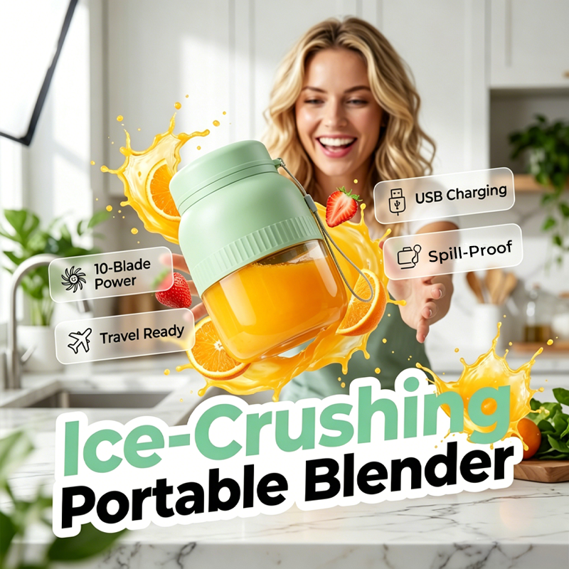 ICE-CRUSHING PORTABLE BLENDER - Experience the ultimate convenience with our ice-crushing portable blender. Featuring a powerful motor and dual lids, it's perfect for making fresh smoothies and shakes wherever your day takes you.