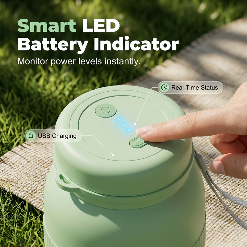 SMART LED BATTERY INDICATOR - Stay powered up on the go. The intuitive LED display shows real-time battery status, while convenient USB charging ensures your portable blender is always ready for your next smoothie.