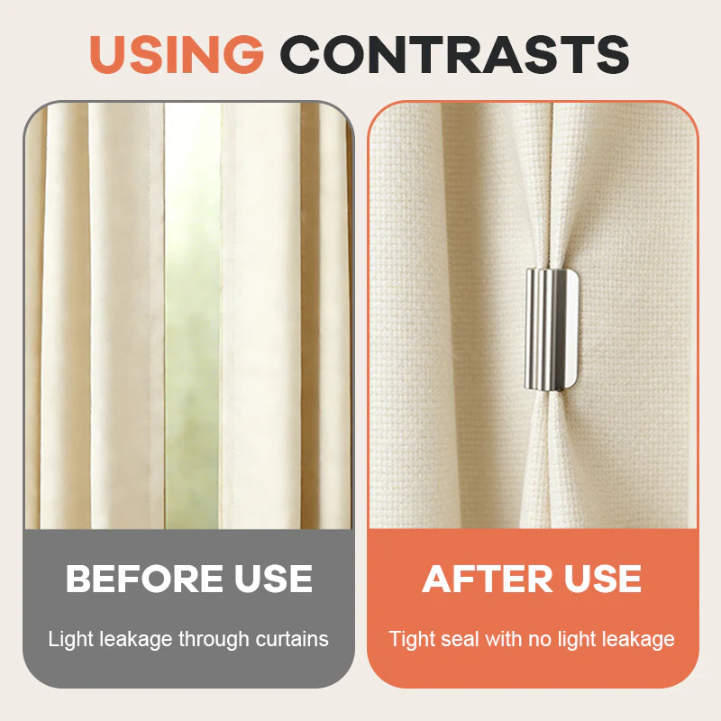 VERSATILE FUNCTIONALITY - Beyond sealing light gaps, these magnetic clips can also be used as stylish curtain tie-backs. Gather your curtains during the day to let light in, adding a touch of modern elegance to your windows.