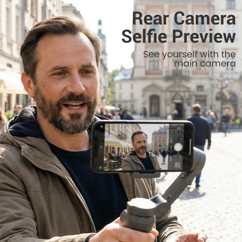 REAL-TIME REAR CAMERA PREVIEW - Use your phone's superior rear camera for high-resolution selfies and vlogs. The instant preview ensures you frame every shot perfectly, capturing stunning detail and clarity every single time.