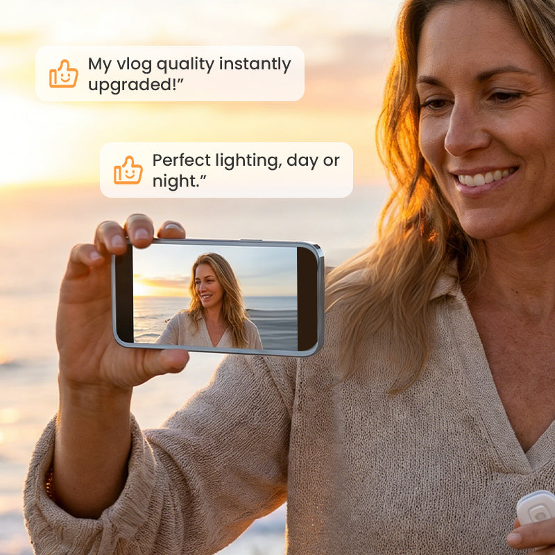 ADJUSTABLE 4-LEVEL FILL LIGHT - Overcome poor lighting with a built-in, four-level adjustable LED light. Effortlessly brighten your face for flawless selfies and videos, ensuring you look your best in any environment, day or night.