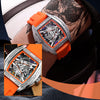 CREATIVE TRANSPARENT MOVEMENT DIAL: Featuring a unique transparent movement dial, this watch showcases its inner workings beautifully. This eye-catching design adds a modern touch, making it a conversation starter wherever you go.