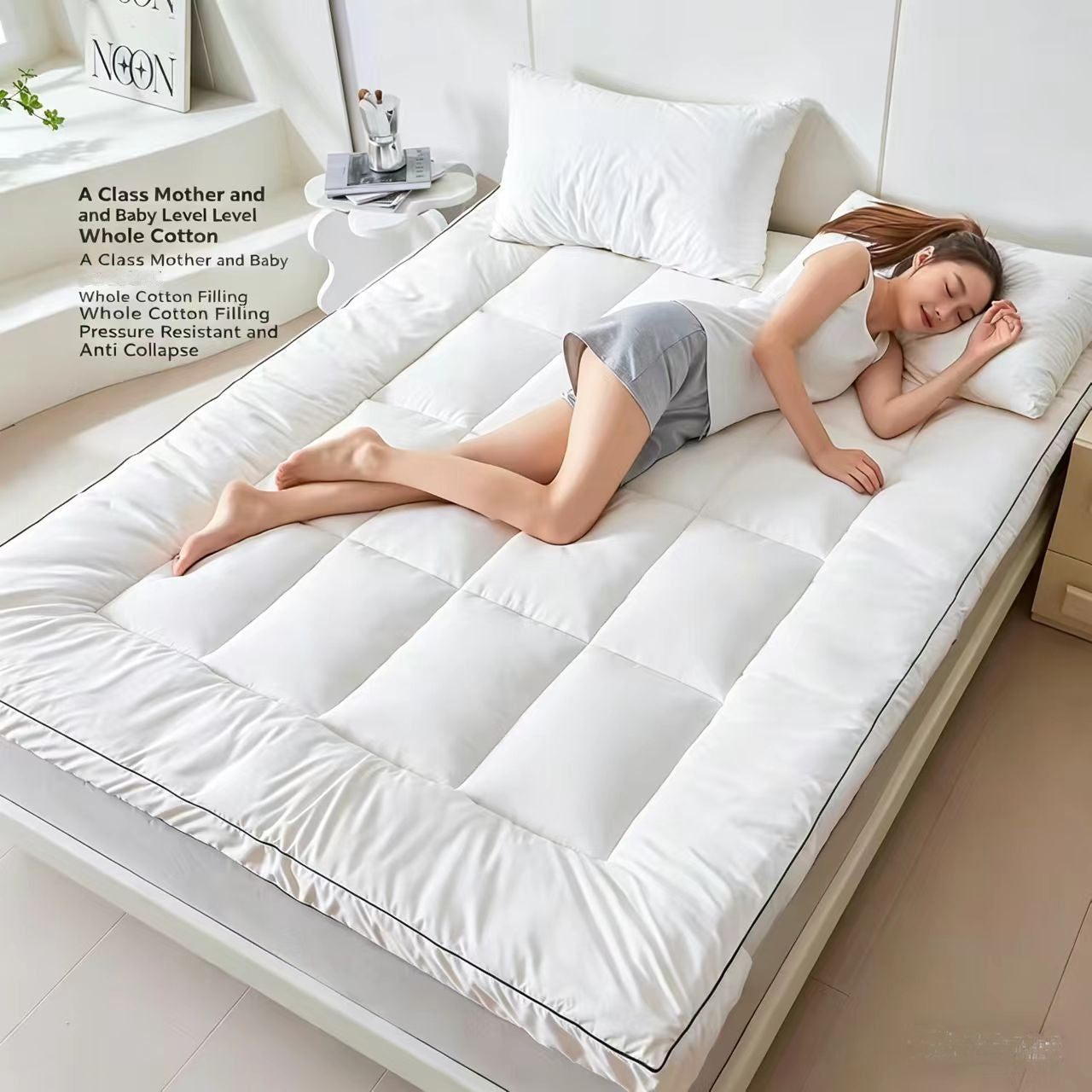 - 【MACHINE WASHABLE】This mattress topper is easy to take care of, throw it in the washing machine, wash it in cold water, economical and sustainable.