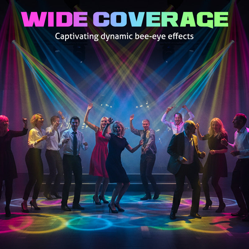 Central bee-eye lens produces a mesmerizing wash effect with multiple sharp beams – adds unmatched depth and complexity to your lighting setup. Deliver studio-quality visuals for stages, clubs, bars, or private parties (no need for expensive professional gear!).
