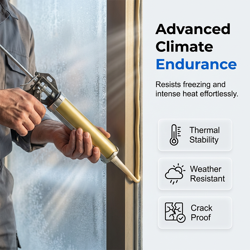 ADVANCED CLIMATE ENDURANCE - Engineered to withstand severe temperature fluctuations, this premium silicone sealant maintains its structural integrity and flexibility in both freezing winters and scorching summers without cracking.
