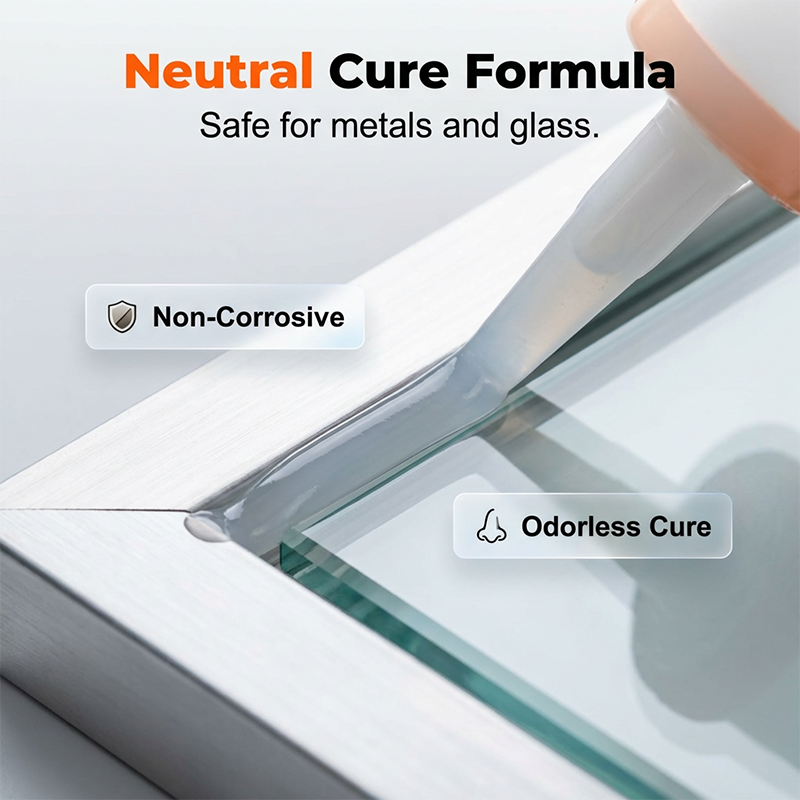 NON-CORROSIVE NEUTRAL FORMULA - Our advanced neutral cure formula ensures zero corrosion on sensitive materials like aluminum, coated glass, and concrete, delivering a secure bond without damaging surfaces.
