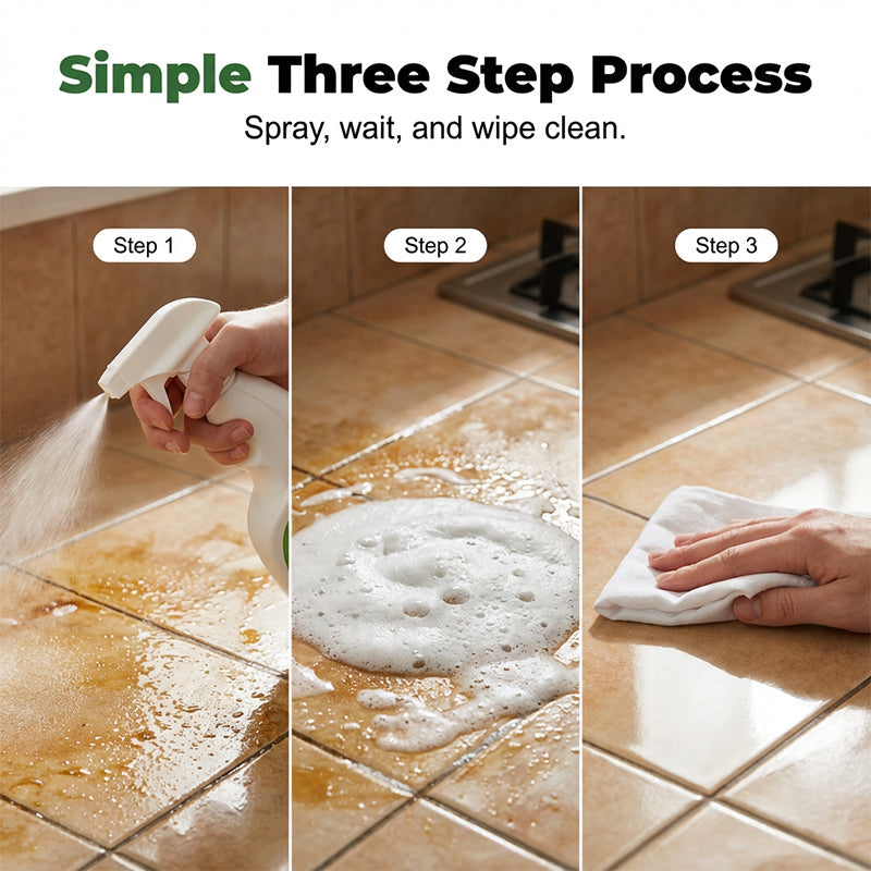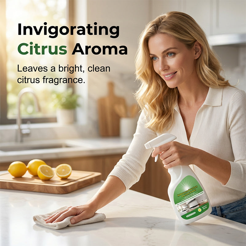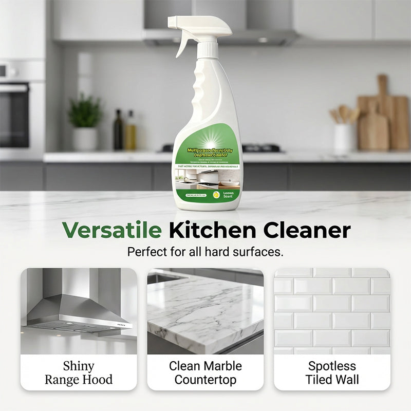 VERSATILE KITCHEN CLEANER - Your all-in-one solution for a spotless kitchen. Perfectly safe and highly effective on stovetops, range hoods, countertops, and tiles. One bottle tackles all your kitchen cleaning needs.