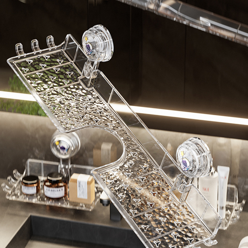 DURABLE CONSTRUCTION - Made from high-quality, transparent PET plastic that resists yellowing and wear over time. This sturdy material ensures long-lasting clarity and durability, maintaining its sleek appearance while reliably holding your bathroom necessities.