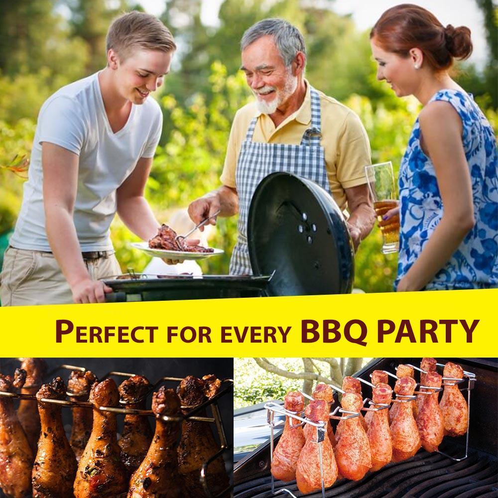 With our innovative Roasted Chicken Rack Holder, roasting or grilling chicken is now incredibly convenient and easy! Simply hang the chicken drumsticks on the rack, place it in the oven or on the BBQ grill, and you're done. This rack allows you to grill all your drumsticks at once, ensuring they come out evenly cooked, juicy, and perfectly browned every time. Say goodbye to burnt or undercooked chicken!