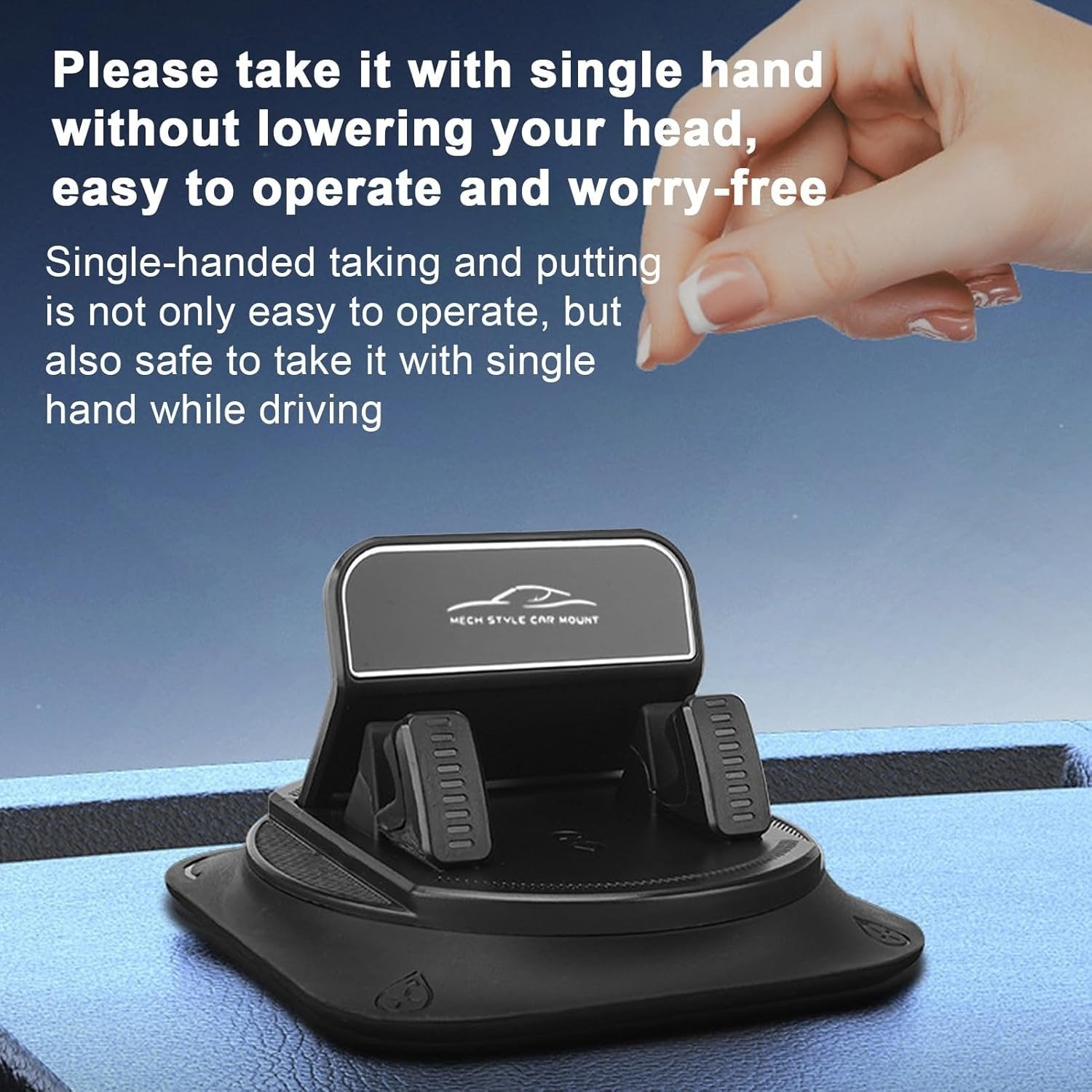 Upgrade your driving setup with this durable dashboard phone mount. The strong adhesive base ensures secure placement in sedans, minivans, trucks, and caravans. Rotate 360° to switch between landscape and portrait, offering safer hands-free use while navigating or video chatting. A must-have accessory for staying organized and keeping your phone within easy reach on every road trip.