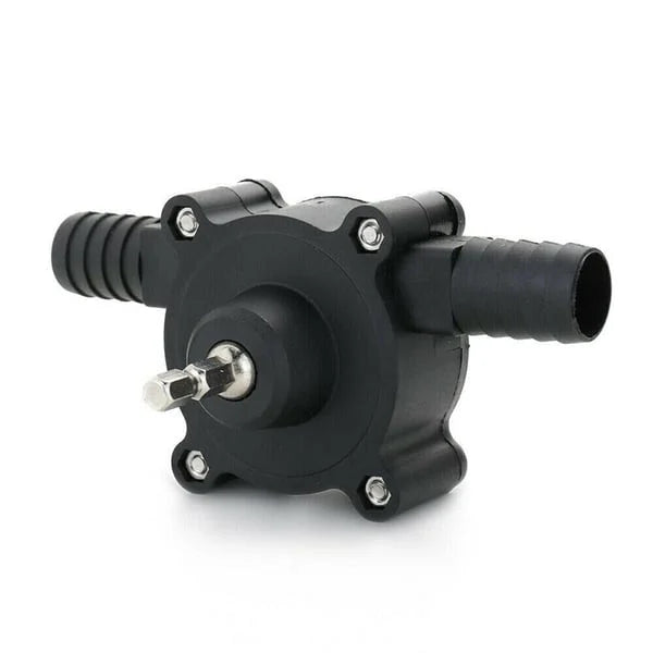 Self-Priming Transfer PumpĀ isĀ battery-free. All you need is toĀ attach an electric drill to this pump, and you can transfer water, oil, and more!Ā The drill pumpās hex shank isĀ compatible with different kinds of drill bit chunks.Ā