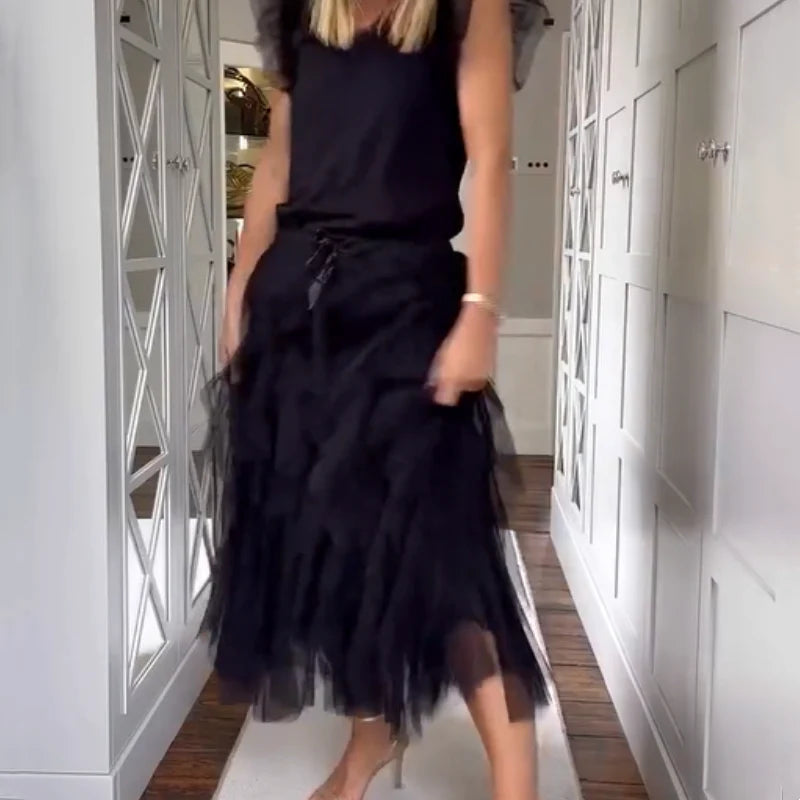 Women’s Elegant Irregular Layered Ruffles Long Skirt