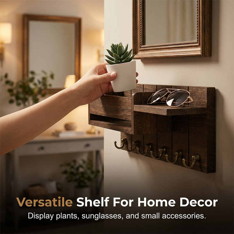 Wall-Mounted Mail and Key Holder with Shelf