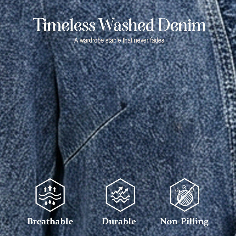 TIMELESS WASHED FINISH - Features a classic blue denim wash that offers a versatile and enduring appeal. This go-to finish pairs effortlessly with a wide range of colors and patterns in your wardrobe.