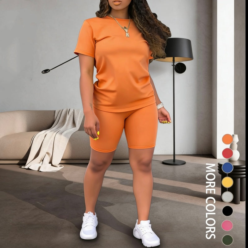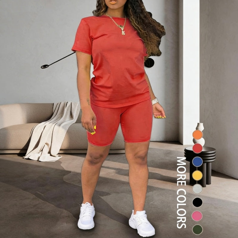 COMPLETE TWO-PIECE SET - Effortlessly create a coordinated look with this matching t-shirt and biker shorts set. It saves you time getting ready, ensuring you always look stylishly put-together with minimal effort.