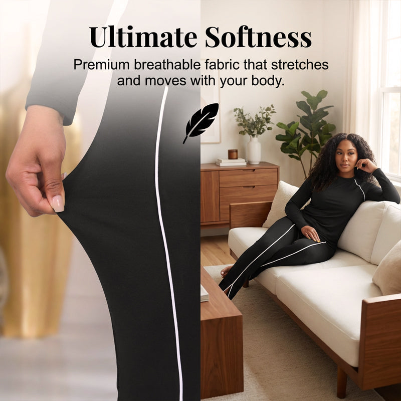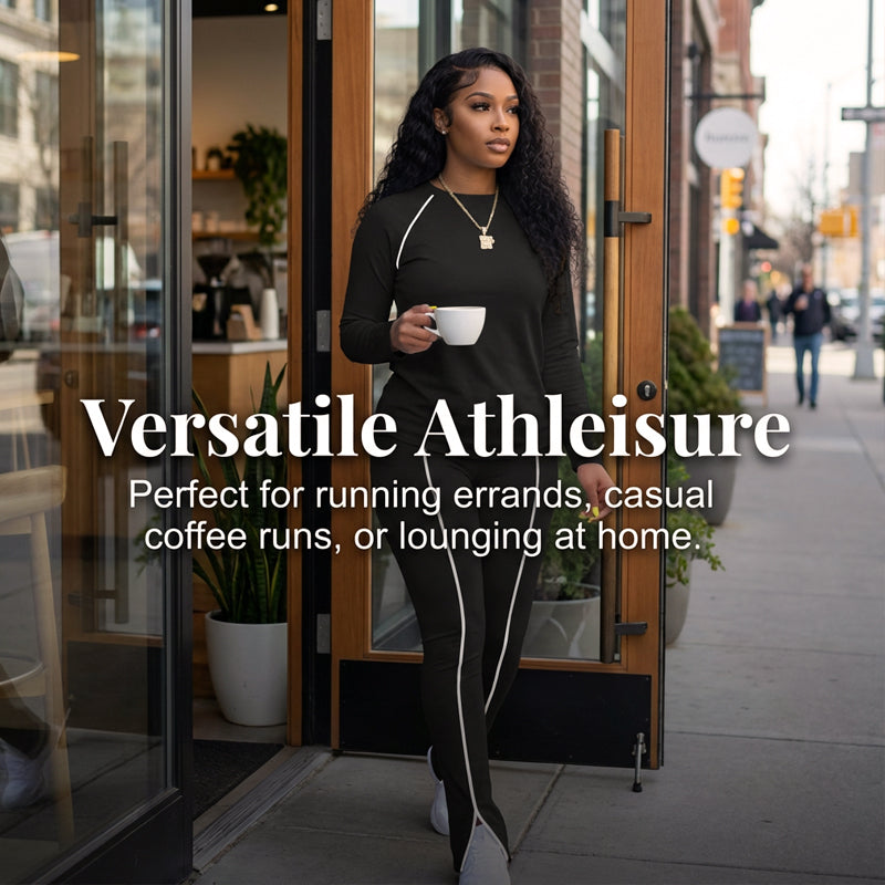 CONTRASTING SIDE STRIPES - Create a slimming, elongated silhouette while adding a modern, athletic touch. This thoughtful design detail visually lengthens your frame and enhances the overall sporty-chic aesthetic of the outfit.